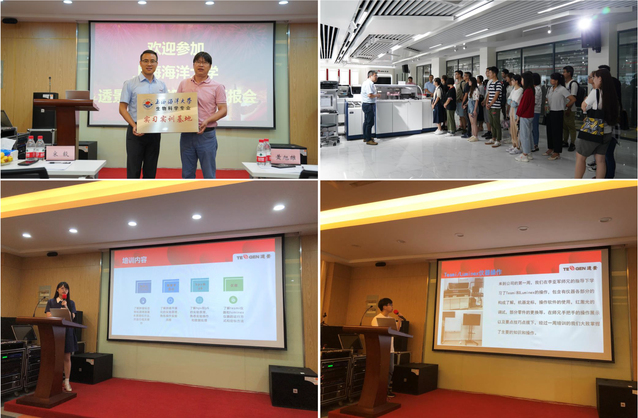我院师生抵到透景生命后,透景生命的人力资源总监、研发部的经理和培训主管带领我院师生参观了透景生命的科研实验平台,核心产品、员工学习生活等功能区。接着,在会议室进行了实习汇报总结,来自2016级生物类的4名同学分别就本次在透景生命的实习内容、心得体会、实习感悟进行了交流发言,透景生命带教研发人员和专业负责人对每位学生的工作进行了点评和考核。学生汇报结束后,黄旭雄对透景生命、带教老师和实习同学表示了感谢,同时也提出了后续双方进一步加深产学研合作的希望,得到了公司的积极反馈。双方还进行了上海海洋大学实习基地授牌仪式。