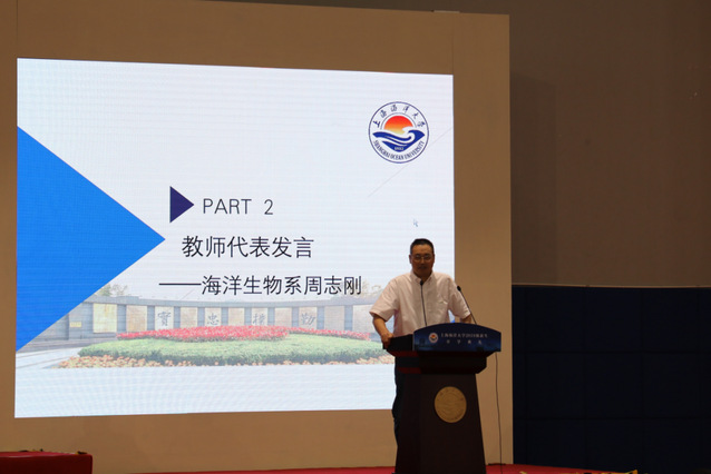 海洋生物系教师代表周志刚教授作为教师代表发言,他谈到“读书使人明智,读书使人明鉴”,希望同学们在校期间,要多读书,读好书,做到求真明鉴。珍惜时代赋予的机会,勤奋努力,完善自我。发掘自身兴趣,找到学科兴趣。