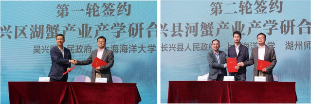 上午文化节开幕式上,吴兴区人民政府与上海海洋大学,长兴县人民政府与上海海洋大学、湖州师范学院分别签署了产学研合作项目协议。