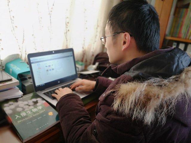 唐首杰认真准备泛雅平台的《生物入侵》在线课程建设