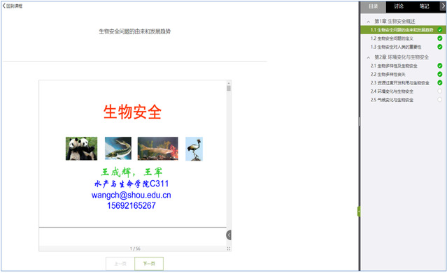 王成辉和王军主讲的《生物安全》在线课程