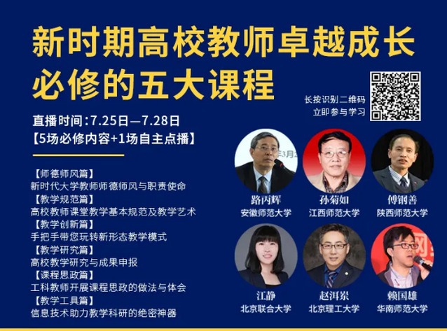 为了进一步贯彻落实《国务院关于加强教师队伍建设的意见》文件精神,帮助青年教师快速适应“互联网+”时代下的教学方式,提高职业素养和教学水平,进一步提升教师课堂育人、课程育人的能力,7月25日至7月28日,在我校水产与生命学院组织下,张玮、李慷、温彬、李松林、孙云飞、竹攸汀、李文豪、高大海、孙盛明、王建、黄林彬等11位青年教师参加了《新时期高校教师卓越成长必修的五大课程线上训练营》的线上培训活动。本次培训汇聚了北京理工大学、华南师范大学、陕西师范大学等大学的6位知名高校教育教学领域专家学者,培训内容凝结了他们多年深厚的教育教学研究和实践经验,聚焦了前沿的教学理念、精心的教学设计、有效的教学工具等多个维度的内容。