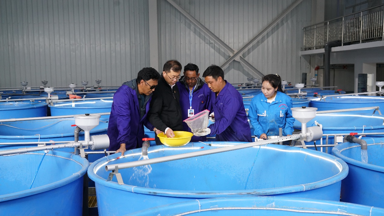 服务团一行首先考察了亚东鲑鱼的人工繁育基地、苗种培育基地、成鱼养殖产业园,工厂化养殖车间等产业化基地,与各基地的养殖人员面对面交流,现场解答养殖问题,实地指导技术要点。