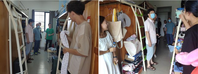 水产与生命学院研究生辅导员翟斯凡、刘倩、李爽、宋小尊通过线上、线下相结合的方式对学生返校前的需求及疑惑进行详细地询问和解答,并向学生传达现阶段学校疫情防控的相关要求。返校后,辅导员们前往每一间宿舍,询问返校学生是否能适应新的宿舍环境,返校后有哪些需求亟待解决。同时提醒大家减少串门走动,注意个人及宿舍卫生安全。