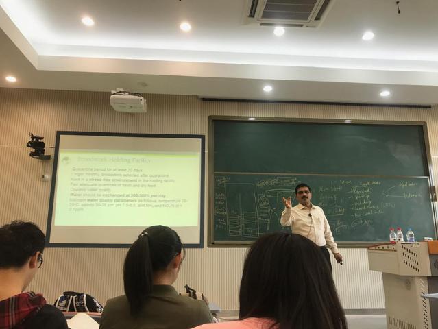 2018年10月30日-11月1日,我校水产养殖学专业的客座教授,来自泰国亚洲理工学院(Asian Instituteof Technology,AIT)的SalinKrishna博士为2016级水产卓越班同学讲授《甲壳动物增养殖学》课程的部分内容。