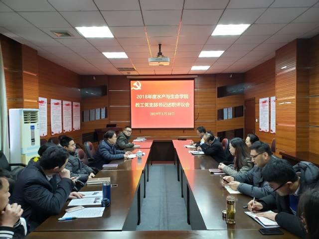 1月10日,水产与生命学院在图文信息中心406和水产与生命学院102举行了2018年度学生党支部书记和教工党支部书记2场述职评议会,23个支部依次进行年度工作述职汇报,全体党委委员、各支部支委成员、党员代表参加,两次会议均由院党委书记张宗恩主持。