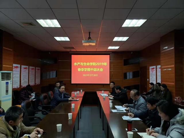 2月20日下午,水产与生命学院在B102室召开2019年春季学期干部大会,全体院领导、各基层组织负责人参加会议,会议由院党委书记张宗恩主持。