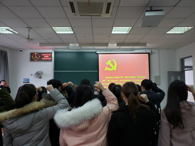 宣誓仪式在庄严雄浑的《国际歌》旋律中开始,紧接着周涛峰代表党组织致辞,他指出了仪式的重要性,希望大家铭记宣誓仪式这一重要时刻,铭记党员身份,同时也表达了对新预备党员的祝贺。