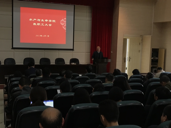 4月7日,水产与生命学院召开全院教职工大会,部署学院近期工作和学院教职工党史学习教育动员大会。学院领导班子、全院教职工参加了会议。