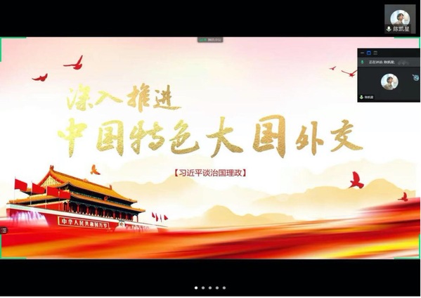 此次学习让大家进一步了解了中国特色大国外交,中国本着开放包容的态度,不结盟,不自我膨胀对所有国家一视同仁。同学们深刻理解了中国应当推动建设什么样的世界、构建什么样的国际关系。中国共产党作为百年大党,将一如既往地为世界和平安宁做贡献、一如既往为世界共同发展做贡献、一如既往为世界文明交流互鉴作贡献,同世界各国人民一道,推动构建人类命运共同体,携手建设更加美好的世界。