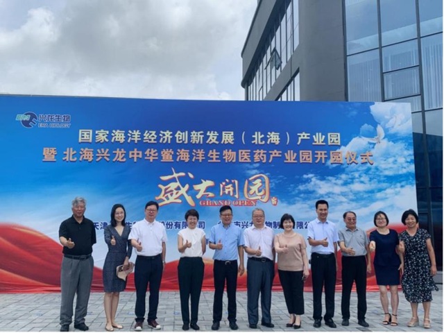 当日由广西省北海市副市长孙环志宣布开园。孙环志随后与广西自治区发改委、广西自治区海洋局、区市场监督管理局、北海市政府等部门相关领导一同参观了园区内的兴龙公司和上海海洋大学合作共建的“海洋科普教育展馆”以及中国鲎养殖繁育基地。专家领导对产业园围绕“海洋强国”“资源保护”“健康强国”的布局做出了高度的评价及肯定。