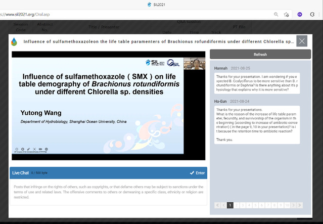 8月22日至8月27日,由国际湖沼学会主办,韩国湖沼学会承办的第35届国际湖沼学大会(SIL 2021)在在韩国光州举行。由于疫情的原因,本次会议采用线上线下相结合的方式举行。来自韩国、中国、美国、俄罗斯、日本、加拿大、墨西哥等三十多个国家的近四百位代表参会。上海海洋大学水产与生命学院副教授季高华及其指导的硕士研究生陈琦、文敏和本科生王语同参加了会议。