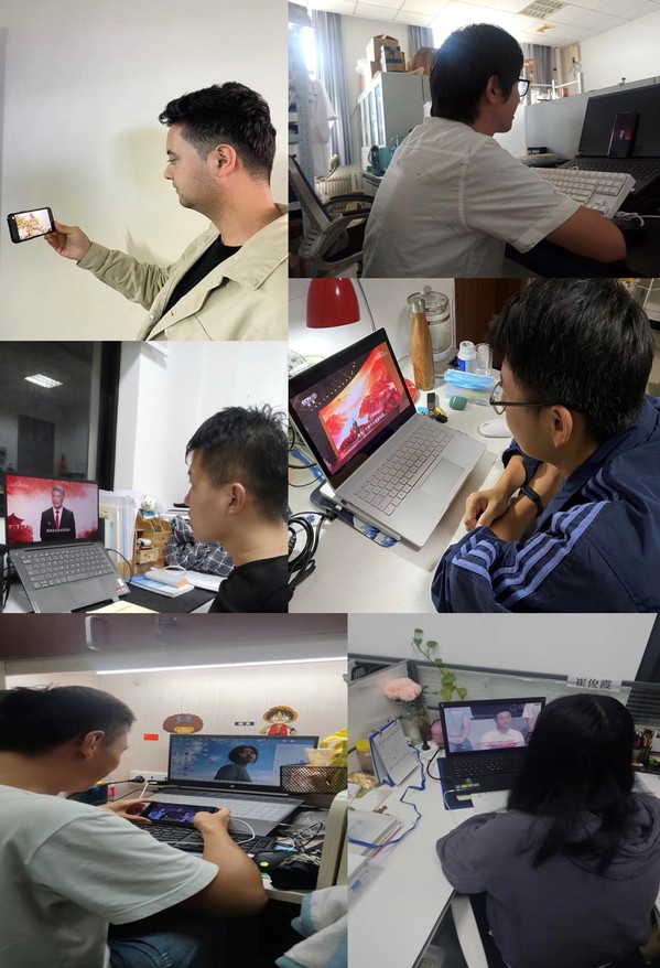青年教师祖尧观看直播后说道:“历史的烟尘掩盖不出岁月的风雨,当年的星星之火已然发展成燎原之势,祖国越来越强大,越来越富强,离不开伟大共产党的领导和不懈努力。当前在错综复杂的国际环境中,一场没有硝烟的战争慢慢浮出水面,国际上外部国家的对抗,科技领域的卡脖子,宛如回到了那个烽火连天的战场,我相信,在这血与火的考验下,中国共产党还会继续领导全国各族人民前赴后继,英勇战斗。作为一名科研工作者,我定当不断努力,不断提高,突破科学前沿,为打赢这张没有硝烟的战争尽自己的微薄之力”。