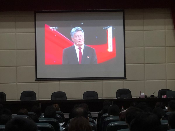 对于青年代表的问题主讲人一一进行了解答。总的来讲我们对党对制度对国家比以往更有信心,谢校长就提到,西方关于人民对国家政府的信任度调查中,中国名列第一,相比于其他国家,我们真正做到了“党民一心,共同奋斗”,这是一种相当难得的中国精神,正如习总书记所说的,人民对美好生活的向往就是党的奋斗目标,党始终与人民站在同一面,所有中国民众齐心协力向前跑,这种民族凝聚力在其他任何西方国家和发展中国家都是难以想象的,这是我们的优势,我们要仔细讲出来。在主讲人慷慨激扬的演讲中,同学们听得热血沸腾,对党的光辉历程有了更深的认识。